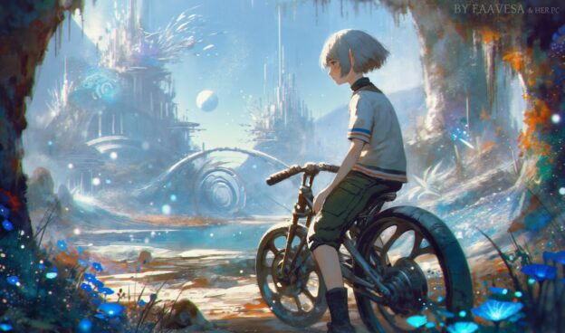 Однако если мы разработаем полноценный сеттинг — что она живет на другой планете, где леса полны неизвестных человеку растений и животных — и дадим такое описание нейросети, то изображение будет выглядеть более интересно, при этом отвечая контексту истории.