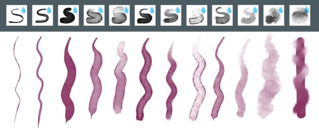Krita позволяет очень тонко работать с параметрами инструментов и справа предлагает пространство, чтобы сразу попробовать результат. Не придётся выходить из настроек.