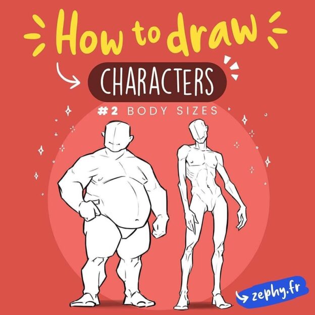 У всех разный силуэт и тип тела. Чтобы нарисовать конкретный, нужно сначала подумать, какая базовая форма будет использоваться для вашего персонажа. В процессе можно ее адаптировать под конкретного героя или менять ширину или высоту — комбинаций может быть очень много!