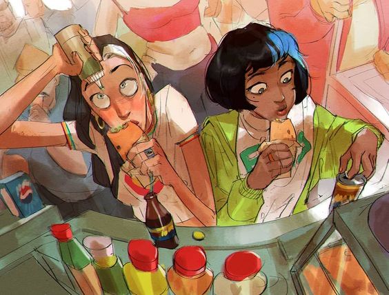 Например, на работе ниже образ девушки ближе к зрителю — психологически это заставляет воспринимать ее как сильного и властного персонажа, причем даже не нужно видеть оружие в ее руках. Внимание зрителя концентрируется именно на ней, а уже потом перетекает на мужчину позади. Причина в том, что крупные объекты всегда воспринимаются человеком как что-то величественное, а маленькие на их фоне — как что-то незначительное.