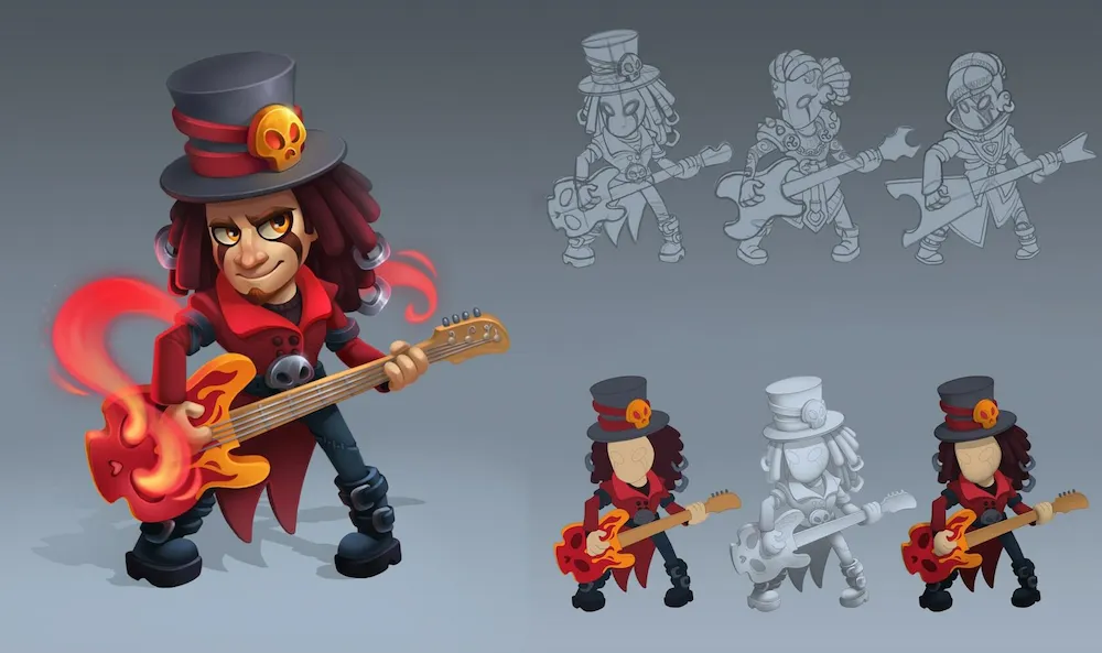 Я работаю 2D-художником в RocketBrush Studio: выполняю разные задачи, включая концепт персонажей. Мне нравится весь процесс разработки, особенно ощущение, что вы с командой вдыхаете в проект новую жизнь. Я очень люблю творчество во всех направлениях, меня вдохновляет труд других мастеров, поэтому я собираю небольшие коллекции лимитированных BJD, артбуков и так далее. В свободное время смотрю фильмы, самые любимые: "Пятый элемент", "Константин" и фильмы Marvel.