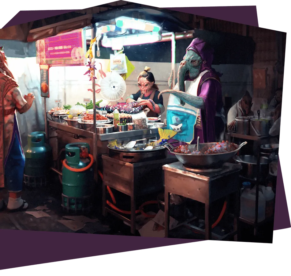Фотобаш — универсальный инструмент. С его помощью можно рисовать и окружение, и персонажей, и пропсы и много других концептов. Создавать и скетчи и полноценные иллюстрации: если заказчику нужно в короткие сроки презентовать черновой набросок или готовое изображение — фотобаш поможет.